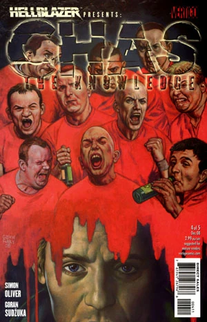 Red vs. Blue. The demon possessing Chas's would-be protégé, Nicky, has unlocked the secrets of "The Knowledge," and now it's looking to rip the soul right out of London. And where better to start than a football match between two of the city's most heated rivals? The ensuing chaos creates a moment of decision in the life of "Chas."