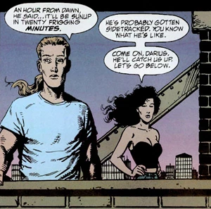 Darius (b. 1030, d.1999) is a vampire. He was first shown living in London, where he was a lover of The King of the Vampires, but later relocated to Gotham City. He first appeared in Hellblazer issue 68.