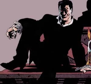 But on the way he realised: if The King was dead, then he was the next in line to the thone. Retreating once more into the darkness, he declared himself the new King of the Vampires. Six years later, Gotham City fell victim to an earthquake that left it devastated. It was written off by the US Government and declared a 'no-man's land'. Seeing an opportunity to build himself a kingdom he and at least a dozen other vampires arrived in the city to claim it as their own. When one of their number killed a child, however, hitman Tommy Monaghan and his friend Natt took it upon themselves to stamp out the menace. (Hitman issue 38, 1999)