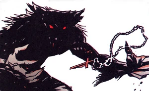 However, Chalice's supernatural nature meant that this did not kill him outright. Constantine contacted him a few years later to help tackle a demon that was liquefying and consuming the innards of homeless men. Chalice was persuaded to help and used his wolf form to tear the demon apart. (Hellblazer issue 229, 2007)