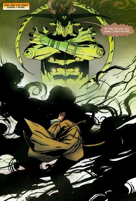 But John's problems aren't over yet: he's still got an addiction to Julian's skin to deal with. After a tussle with Julian's supernatural bodyguard, Constantine finally meets with Julian, who says that he wants Constantine to be his slave - and that his first job will be to dissuade his teacher from testifying against him in court, as it would undo all his hard work at the school. Constantine, apparently infuriated, launches himself at Julian and begins choking him, only backing off when Julian threatens to call up his bodyguard again.