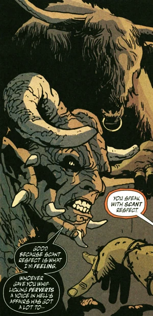 Not all demons are based in Hell, however. The concept of 'demons' features in many religions, which means - thanks to the polytheistic world of Hellblazer - that they also exist in many non-Juedo-Christian forms. For example, Papa Midnite was surprised to discover that the hunger demon, Mnemoth, was of African origin, not Hell. The First of the Fallen is also counted as a demon, although he was never a human and is not of the actual demon lineage. Demons are distinct from fallen angels.