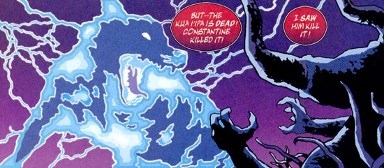 The Shadow Dog, or Kua I'ipa, is a creature created to protect mankind from The Beast, a monster without a specific physical form. However, the Dog's presence at various disasters across the world caused people to believe that it was the cause of, not the cure for, the disasters it was seen near. As a result John Constantine incorrectly assumed that it was an enemy. It first appeared in Hellblazer issue 179.
